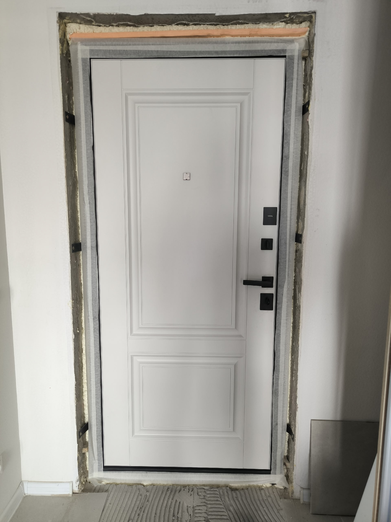 Металлическая входная дверь в квартиру чёрная №37 — это надежный выбор для установки в квартире, даче, частном доме, офисе или подъезде. Ее прочная конструкция из профильных труб 50x25 мм и холоднокатанной стали толщиной 2 мм обеспечивает отличную устойчивость к внешним воздействиям. Внешняя отделка в черном цвете придает двери современный и стильный вид, а внутренняя отделка аккуратно завершает её внешний вид. Уплотнение с двумя контурами резинового уплотнителя защищает от влаги и пыли, хотя терморазрыв отсутствует. Дверь оборудована надежными замками «Просам» и «Мосрентген», каждый с тремя ригелями, что гарантирует высокий уровень безопасности. В добавок к стандартной комплектации, можно выбрать дополнительные элементы — зеркало, стеклопакет или кованые детали, а также установить видеодомофон.